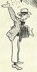 Through the pages of The Sun Glover's caricatures and commentary on politics, society and topical news-stories became an institution. His portrayal of 'John Citizen' or 'John Taxpayer' was a character representing the average man.[27] The figure, moustachioed and wearing a hat, made frequent appearances in Glover's cartoons.[31]