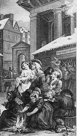 Tom King's Coffee House (later known as Moll King's Coffee House) was a notorious establishment in Covent Garden, London in the mid-18th century. Open from the time the taverns shut until dawn, it was ostensibly a coffee house, but in reality served as a meeting place for prostitutes and their customers. By refusing to provide beds, the Kings ensured that they never risked charges of brothel-keeping, but the venue was nevertheless a rowdy drinking den and a favourite target for the moral reformers of the day.