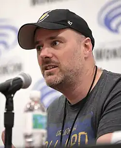 In San Diego Comic-Con 2015, Vertigo revealed a new creator-owned project written by King with art by Mitch Gerads titled The Sheriff of Baghdad.[18] The project, a crime series in the vein of Vertigo titles like Preacher and Scalped, was set to launch in late 2015, and was inspired by King's time in Iraq as part of the CIA.[19] Initially an eight-issue miniseries, it was later re-titled The Sheriff of Babylon and expanded into an ongoing series.[20][21] The first issue launched in December 2015 to critical acclaim, with reviewers praising its "deeply personal" storytelling and the "intriguing" and "captivating" personalities of its characters.[22][23] That same year, DC announced "Robin War", a crossover storyline set for December that would run for five weeks through titles Grayson, Detective Comics, We Are Robin, and Robin: Son of Batman; King was set to orchestrate the crossover's story-line and pen two one-shots to open and close the series.[24]