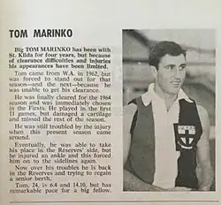 Thomas Keith Marinko (3 August 1941 – 12 July 1981) was an Australian rules footballer who played with West Perth, 1960 – 61[1] in the West Australian Football League and, after waiting two years to be cleared on transfer, St Kilda, 1964 – 65, in the Victorian Football League.[2]