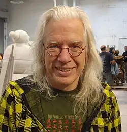Tom Otterness (born 1952) is an American sculptor who is one of America's most prolific public artists.[1] Otterness's works adorn parks, plazas, subway stations, libraries, courthouses and museums around the world, notably in New York City's Rockefeller Park in Battery Park City[2] and Life Underground in the 14th Street – Eighth Avenue New York Subway station. He contributed a balloon (a giant upside-down Humpty Dumpty) to the Macy's Thanksgiving Day Parade.[3][4] In 1994 he was elected as a member of the National Academy Museum.[5]