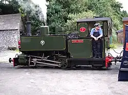 The project to convert Irish Pete did not happen and the locomotive remained in storage at Tywyn. In the late 1980s, work started to build a new locomotive using the boiler, driving wheels, cylinders and other parts from Irish Pete. New frames were manufactured by the Talyllyn Railway in 1971.[3] This work was done at the railway's own works at Pendre and was completed in 1991.[4] The newly built 0-4-2T locomotive was named Tom Rolt after the author L. T. C. Rolt who inspired the Talyllyn's preservation. As of 2025, Tom Rolt is running in the standard Talyllyn Railway livery of deep bronze green lined with black borders and yellow lining.