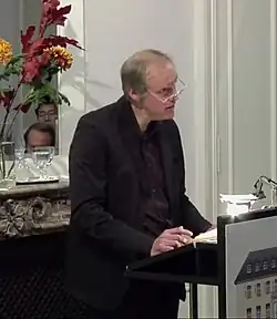Tom Sleigh (/sleɪ/) is an American poet, dramatist, essayist and academic, who lives in New York City. He has published nine books of original poetry, one full-length translation of Euripides' Herakles and two books of essays. His most recent books are House of Fact, House of Ruin: Poems and The Land Between Two Rivers: Writing In an Age of Refugees (essays). At least five of his plays have been produced. He has won numerous awards, including the 2008 Kingsley Tufts Poetry Award, worth $100,000,[1] an Academy Award from the American Academy of Arts and Letters,[1] The Shelley Award from the Poetry Society of America,[1] and a Guggenheim Foundation grant.[1] He currently serves as director of Hunter College's Master of Fine Arts (MFA) program in Creative Writing. He is the recipient of the Anna-Maria Kellen Prize and Fellow at the American Academy in Berlin for Fall 2011.