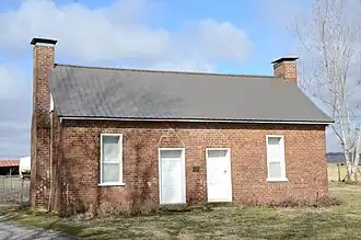The Tom Smith House is a historic house on Arkansas Highway 74, east of Elkins, Arkansas in Washington County. It is a single-story brick structure, with a side gable roof, end chimneys, and a four-bay front facade. The bricks, which were locally made, are four courses deep, and end in a cornice shaped out of S-shaped molded bricks, an extremely rare detail. The front facade is asymmetrically arranged, with two doors in the center bays and sash windows in the outer bays. Built c. 1834, it is a rare regional example of late Georgian architecture, and is historically significant for its builder, Thomas Smith, who was one of the earliest white settlers of the area. The house stands behind a more recent (c. 1900) frame house on more than 30 acres (12 ha) of land on the north side of AR 74.[2]
