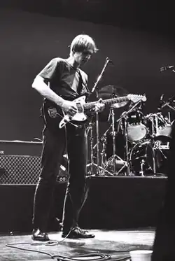 Tom moved to Wilmington, Delaware, with his family when he was six.[7] He began studying piano at an early age, but switched to saxophone in middle school after hearing a record by Stan Getz. Jazz saxophonists such as John Coltrane and Albert Ayler inspired him.[8] Verlaine initially was unimpressed with the role of the guitar in both rock music and jazz, but was inspired to take up the instrument after hearing the Rolling Stones' "19th Nervous Breakdown" during his adolescence,[9] at which point he began a long period of experimentation to develop a personal style. A later musical influence were Miles Davis' electric-period recordings, particularly the Japanese LPs Agharta (1975) and Dark Magus (1977), which he was able to obtain as imports.[10]