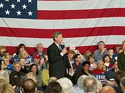 In January, Vilsack toured New Hampshire, site of the first primary. There he met with middle school students, with whom he discussed his plans for rebuilding Iraq. Dismissing his Democratic opponents' calls for caps on American troops in the nation, Vilsack advocated a troop withdrawal. He also talked about Iraq with employees of the Granite State Independent Living Group, blaming the costs of rebuilding for the lack of public funds available for domestic projects.[6] In Iowa later in the month, Vilsack reiterated his opposition to troop caps, likening them to "staying the course". He stated that troop capping "reflects the continuation of a failed policy" and that America "ought to be...aggressively redeploying troops out of Iraq."[7]