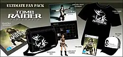 Exclusive to EB Games in Australia and New Zealand was the Tomb Raider: Underworld Ultimate Fan Pack, which was available on 360, PS3 and PC. The pack contained the retail version of the game, a Lara Croft calendar, a Lara Croft figurine, a Tomb Raider T-shirt, a trucker cap and a messenger bag.[71] Exclusive to Game in the United Kingdom was the limited edition of Tomb Raider: Underworld, which was available on 360, PS3 and PC. The edition included a bonus disc, which contained behind-the-scenes documentary, promotional artwork, an exclusive soundtrack, videos and trailers.[72] Themed merchandise was created based on the game, including figurines and books containing artwork from the games up to that point.[73] The PS3 version of Underworld was bundled with ports of Legend and Anniversary in a collection dubbed The Tomb Raider Trilogy.[74] The collection was published worldwide in March 2011.[75][74][76]