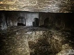 The cave has an area of 130 square metres.[6] There are ten compartments in the walls of the cave to align with burial practices stated in the Mishnah.[3] These ten compartments are actually burial niches; Othniel is buried in one of them, while nine of his students are buried in the others.[7] However, J.J Benjamin states that Jesse, the father of David is buried in one of the nine remaining burial niches.[8]