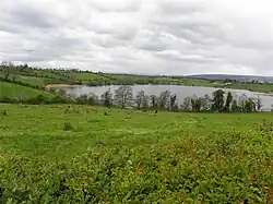 Tomkinroad is bounded on the north by Drumrush townland, on the east by Carrowfarnaghan and Keenaghan townlands, on the south by Clowney townland and on the west by Ardue and Tomassan townlands. Its chief geographical features are Tomkinroad Lough,[6] which contains a wide variety of coarse fish, Holy Lough,[7] which is stocked with rainbow trout, the Rag River and a drumlin hill which reaches a height of 210 feet above sea-level. The townland is traversed by minor roads & lanes and the disused Cavan and Leitrim Railway. Tomkinroad Railway Station and Level Crossing were actually located in Drumrush townland, not in Tomkinroad townland.[8] The area of the townland is 146 acres, including 36 acres of water.
