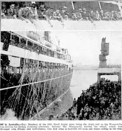 In a write up on the Māori players in the Sydney Mail it was written of Chase: “the man who played the best game in the first of the two Maori trials, the one at Hamilton, was T. Chase… this diminutive Maori is the personification of thrust. Give him the ball and he is off the mark like a shot, and his nippiness is calculated to have the Australian inside backs more than a little worried…”. His dop kicking prowess was also highlighted.[204] The team arrived in Sydney on board the Wanganella on July 6.[205]