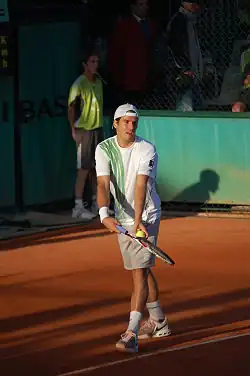 Thomas Mario Haas (German pronunciation: [ˈtɔmi ˈhaːs]; born 3 April 1978) is a German–American former professional tennis player. He competed on the ATP Tour from 1996 to 2017, and was ranked world No. 2 in men's singles by the Association of Tennis Professionals (ATP) in May 2002.[1] Haas won 15 career titles in singles, including a Masters title at the 2001 Stuttgart Masters, and a silver medal at the 2000 Sydney Olympics. He reached the semifinals of the Australian Open three times, and in Wimbledon once. He reached the quarterfinal stage at each of the majors.