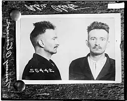 O'Connor was baptised in Monagea Catholic Church, County Limerick, Ireland in 1889, his birth was not officially registered until the following year.[3] He emigrated with his family to the United States as a boy. He first came to public notice when he was arrested after a shootout in which Chicago Police Detective Patrick J. O'Neil died March 13, 1921.[4] This came as a result of investigators coming to arrest him as a prime suspect in a previous case. O'Connor fled and was later arrested in St. Paul, Minnesota. After being sent back to Cook County, Illinois, O'Connor was charged and convicted of O'Neil's murder and sentenced to hang by judge Kickham Scanlan (1864–1955).[5] Four days before the scheduled execution, he and four other prisoners overpowered the guard, took his rifle, and escaped from the courthouse.[6] All but two of the men were last seen dodging through traffic and made their escape.