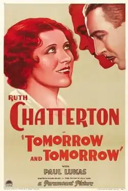 Tomorrow and Tomorrow is a 1932 American Pre-Code drama film that was adapted from Philip Barry's play of the same name by Josephine Lovett. It was directed by Richard Wallace and stars Ruth Chatterton, Robert Ames, Paul Lukas, Harold Minjir, Tad Alexander, Walter Walker and Arthur Pierson. It was released on February 5, 1932, by Paramount Pictures.[1][2]