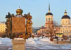 The "Where Tomsk was Founded" marker at the Tomsk History Museum.