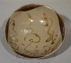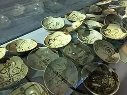 Tongguan is an ancient town with a history of over 2,100 years. There was a bridge named Wuchu (吴楚桥) at Shigang (誓港), According to legend, the bridge was at the boundary point of Wu and Chu states in the Warring States period (476–221 BC). The unearthed earthenwares at Mawangdui proved that at latest Tongguan started to produce potteries in the western Han periods (206 BC–9 AD). The archaeological excavation at Tongguan Kiln Site showed that, the technology of underglazed color figure was originated there in the Tang (618–907 AC) and Five Dynasties periods (907–960 AC). The production of underglaze wares was once prosperous at the later Tang period, and declined in the Five Dynasties periods in the place.[6]