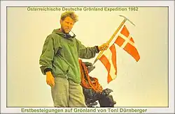 From April to July 1962, Dürnberger led the Austro-German Expedition to Greenland (Österreichische Deutsche Grönland Expedition 1962) that climbed a number of unscaled peaks in the Sermilik sector from April to July 1962. The expedition climbed a total of 37 peaks in the area,[2] including some near the Southern Sermilik fjord.[3]