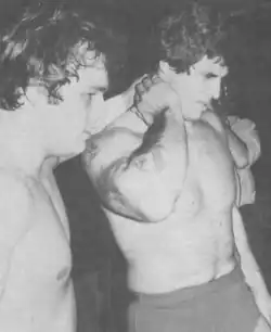 Garea continued his singles career for three years before forming a tag team with new partner Larry Zbyzsko in August 1977. They began teaming after entering a tag team tournament for the vacant tag titles, where they were defeated by Mr. Fuji and Toru Tanaka in the finals on 27 September 1977.[10] They continued to challenge for the titles before defeating The Yukon Lumberjacks (Eric and Pierre) for Garea's third and Zbyzsko's first WWWF World Tag Team Championship on edition of 21 November 1978 of Championship Wrestling.[6][11] They held the titles for four months before losing them to Valiant Brothers (Jerry and Johnny) on edition of 24 March 1979 of Championship Wrestling.[12] Later that same month, Wide was dropped from the promotion's name, renaming the promotion World Wrestling Federation. Shortly afterwards, Garea left the WWF and went to work in Japan and Mid-Atlantic for a year.