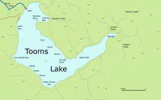 - ^ "Placenames Tasmania – Tooms Lake". Placenames Tasmania. Select “Search”, enter "38090G", click “Search”, select row, map is displayed, click “Details”. Retrieved 13 September 2020.
