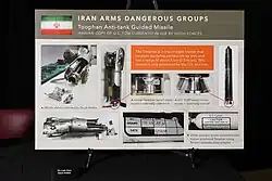 The Toophan (Persian: طوفان "typhoon", rarely Toofan) is an Iranian SACLOS anti-tank guided missile reverse-engineered from the American BGM-71 TOW missile. The Toophan 1, an unlicensed copy of the BGM-71A TOW missile, began mass production in 1988[1] and the Toophan 2, a BGM-71C ITOW variant, was publicly shown in 2000.[2]
