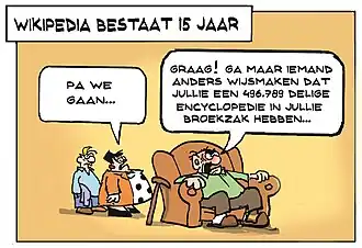 ![]() Toos & Henk cartoon celebrating Wikipedia's 15th anniversary | |