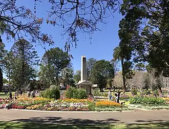 The Queen's Park and Botanic Gardens, Toowoomba was gazetted as a public reserve in 1869. It was not until the mid 1870s that the Queens Park and Botanic Gardens were established as separate, but related, entities on this land. Queens Park was intended as a place of public recreation and the Botanic Gardens as a place for botanic research.[1]