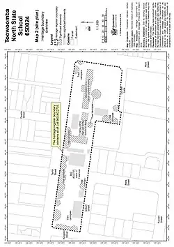- ^ a b c d e f g h i j k l m n o p q r s t u v w x y z aa ab ac ad ae af ag ah ai aj ak al am an ao ap aq ar as at au av aw ax ay az ba bb bc bd be bf bg bh bi bj bk bl bm bn bo bp bq br bs bt bu bv "Toowoomba North State School (entry 650024)". Queensland Heritage Register. Queensland Heritage Council. Retrieved 11 February 2018.