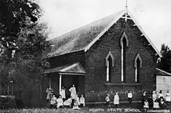 Toowoomba North State School opened as the Mort Estate National School on 6 September 1869 on land donated by pastoralist and politician, James Taylor, MLA. The population of Toowoomba at the time was 3000. The school was opened as a Boys School, with an enrolment of 141 boys, and a Girls and Infants School, with a commencing enrolment of 113 pupils. Both were housed in a brick building facing Mort Street.[13][14][15] Within a year, the school's enrolments had doubled to 286 enrolled at the Boys School with an average attendance of 140, and 261 enrolled at the Girls and Infants School with an average attendance of 130.[16][1]