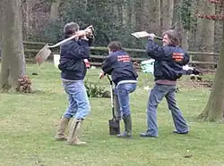 Afterwards, Clarkson moves on to his next project—erecting rugby posts in the garden, despite being told that none of Redgrave's family plays rugby. With May having successfully rebuilt his shed again, it's not long before Clarkson and the Poles lose grip on the rugby posts, and destroy part of the shed again. Hammond, then, has moved on to his last project, a turbo-charged barbecue system, which allows the user to cook varieties of meat in under five minutes, using a jet engine to rotate the meat and cook it. Mays shed is then set on fire by the out-of-control jet engine. An enraged and frantic James May attempts to put the fire out before it can take hold, but he is unable to grab hold of the fire extinguisher which Clarkson now holds.