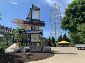 On August 15, 2021, a guest waiting in line to ride Top Thrill Dragster was struck in the head by a small metal piece that dislodged from a train,[27] resulting in a severe injury that was described as a "serious accident".[28] The ride remained closed the following two seasons pending an investigation by the Ohio Department of Agriculture (ODA) and a redesign of the roller coaster,[29] described as a "new and reimagined ride experience".[30]