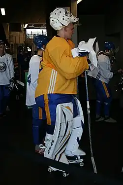 Going into the 2022 NHL Entry Draft, Leinonen was regarded as the top goaltending prospect[7] and was ranked as the top European goalie by NHL Central Scouting.[8] He was drafted 41st overall by the Buffalo Sabres, as the first goaltender selected in the 2022 NHL Entry Draft.[3] He attended Buffalo Sabres Development Camp in 2022, 2023, and 2024.[9][10]