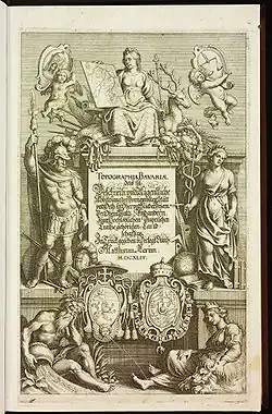 Topographia Germaniae (1642 – c. 1660s) is a multi-volume series of books created by engraver Matthäus Merian and writer Martin Zeiler, and published in Frankfurt in 38 parts.[1] Engravers Wenceslaus Hollar,[2] Caspar Merian, and Matthäus Merian Jr. also contributed illustrations.[1] In the 1960s Bärenreiter-Verlag reproduced the work.[3]