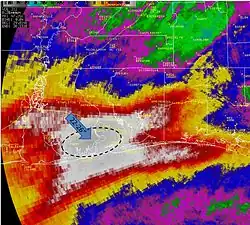 ![]() NEXRAD radar scan of the Flintville, Tennessee EF3 tornado. | |