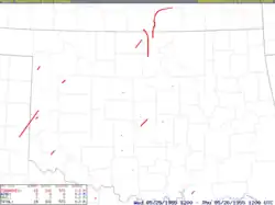 A brief, but destructive F1 tornado touched down in Drayton Plains, Michigan and struck Loon Lake northwest of Pontiac, although there were no casualties. This was not the case in Oklahoma where another F1 tornado tore a 300 yard wide and 1.5 mile long path directly through the center of Sulphur, killing one and injuring two.[1]