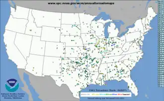 - ^ a b "Tornado History Project: Maps and Statistics". www.tornadohistoryproject.com. Archived from the original on 27 July 2020. Retrieved 26 July 2020.