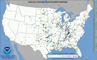 - ^ "April 1974". Tornado History Project. Archived from the original on December 24, 2015. Retrieved December 23, 2015.