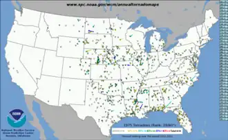 - ^ "Severe Weather Database Files (1950-2021)". Storm Prediction Center. National Oceanic and Atmospheric Administration. July 11, 2022. Retrieved November 12, 2022.