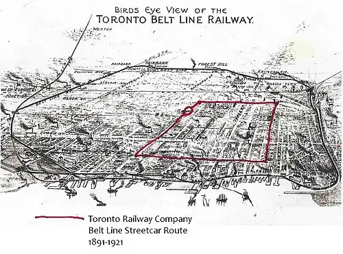 - ^ a b c d Coulman, Pete; Bow, James (April 27, 2013). "A History of the TTC's Belt Line Streetcars". Transit Toronto. Archived from the original on January 20, 2013. Retrieved July 15, 2013.