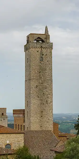 Torre Grossa is the tallest tower in San Gimignano, standing at 54 m (177 ft 2 in) high.[1][2] It is one of the most iconic and well-known medieval towers in Tuscany.[3] The tower was built in 1310.[4]