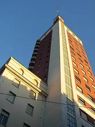 Torre Littoria, or Grattacielo Reale Mutua, is the first high-rise building in Turin, and one of the most renowned rationalist buildings in Italy. It is located in the city centre, on Via Giovanni Battista Viotti, near Piazza Castello.
