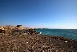 Defense tower “Torre del Tostón” (or "Castillo de El Cotillo") is located in the coastal town of el Cotillo, which forms part of the municipality of la Oliva, Fuerteventura, Spain. This defense tower was recognized as historic-artistic monument in 1949. Nowadays, famous local artists use Torre del Tostón as exhibition room, and it's one of the island's main tourist destinations, including as viewpoint.