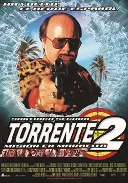Torrente 2: Mission in Marbella[2] (Spanish: Torrente 2: misión en Marbella) is a 2001 Spanish black comedy action film. It is a sequel to Torrente, the Dumb Arm of the Law, and, like the first installment, it was written and directed by Santiago Segura, who takes the leading role of José Luis Torrente. It surpassed its predecessor as the highest-grossing Spanish film of all time.[3]