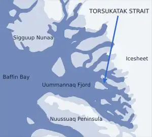 Torsukattak Strait (old spelling: Torssukátak) is a strait in Avannaata municipality in northwestern Greenland.