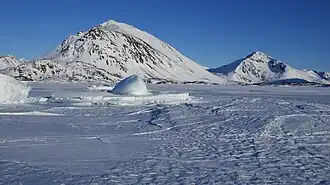In the summer, the cargo boats of Royal Arctic Line connect Kulusuk and Tasiilaq,[3] providing an ad hoc alternative for the helicopter flights of Air Greenland.[4] Polar cruises bound for, or returning from the coastal voyages in the Kangertittivaq fjord and the shores of Northeast Greenland National Park often visit the area on their way from/to Tasiilaq, albeit without anchoring in the harbour due to the shallowness of the coastal waters in the sound.