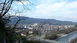 It is located on the Ill river. A popular nearby landmark is the fortress ruin Tosters.
