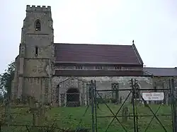 The church is situated at the northern end of the village.[4] The roof of the church is clad in blast-proof sheeting which was installed to protect the structure of the church. The original pantiles are stored inside the church ready to be restored if the village is given back to the public. The churchyard is surrounded by wire fencing to protect the church from the military manoeuvres.