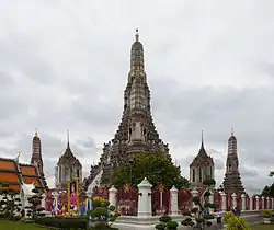 Of the hundreds of Buddhist temples (or wats) in Bangkok, only a few are of much interest to tourists. When King Taksin led his troops out of Ayutthaya and into Thonburi in 1767 CE, they took refuge in Wat Arun. The most prominent feature is a tall chedi built in the 1820s that stands 85 meters (279 ft). It was tallest structure in Bangkok until modern skyscrapers were built a few decades ago.