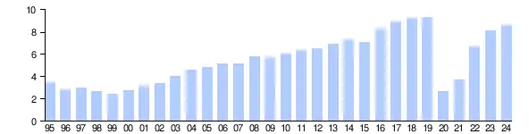 - ^ "Bulgaria: International tourist trips". Our World In Data. August 17, 2024.