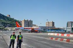 The numbers and relative proportions of visitors have changed considerably over the last 40 years. During the years of the closure of the land border, the majority of visitors arrived by sea. The number arriving by sea remained fairly stable until the mid-1990s[21] but has grown considerably since then due to an increasing number in visits from cruise ships, over 100 of which now visit annually.[6] The number of arrivals by air rose through the 1980s to a peak of 62,438 in 1989 but stagnated for some years afterwards, rising only to 66,219 in 1996. Numbers increased substantially during the 2000s as low-cost airlines Monarch and EasyJet launched flights to the territory. As of 2011, air arrivals constitute only about 1.4% of all visitors,[4] down from 38% in 1974 during the frontier closure.[21] Both air and sea traffic is dominated by British visitors; over 80% of departing air passengers leave for the UK, while 93% of cruise passengers are also British. By contrast, nearly 80% of day visitors by land (and thus effectively 80% of all visitors) are Spanish nationals.[4]