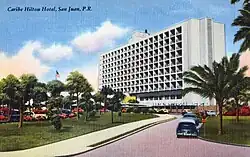 The creation of the Caribe Hilton Hotel in San Juan in 1949 represented a partnership between the Puerto Rican government and private U.S businesses. American business viewed the creation of the hotel as a symbol of their power to create material progress. A majority of Puerto Rican citizens did not approve of the decision to build the hotel as they believed that the public funds would have better suited the island inhabitants if they were invested in improving education and social welfare. San Juan's fire chief of the time disapproved the local government's decision to degrade itself by buying tourists. Articles published by El Mundo in 1952 described American tourists as selfish people who did not care about the island and ones who will in the future convince the Puerto Rican people to serve them. In addition to beach holidays, gambling and casinos were some of the first tourist activities that were developed in the island.[9] The gambling sector is also an important contributor to the tourism sector (employing 3,409 people, 2017 ),[10] and it encompasses 20 casinos all attached to hotels and resorts acting as tourist destinations. It is mandatory, according to Puerto Rican law, that casinos must be attached to hotels and resorts, and must be located within "zones of historic or touristic interest" (Spanish: zonas históricas, antiguas o de interés turístico).[11] Today there is a significant and growing Chinese presence in the Puerto Rico gambling sector, so far 10% of the casinos are owned by Chinese individuals or companies, and more are partially owned.[12] The number of Chinese tourists is also on the rise: in 2019, contribution of travel and tourism to GDP (% of GDP) for Puerto Rico was 6.9%.[13] However, the exact contribution of the gambling sector within the tourism and travel sector is not measured separately by the government.