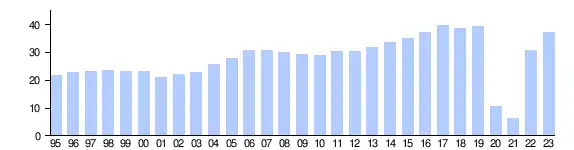 - ^ "World Tourism Barometer" (PDF). World Tourism Organization. May 2024. p. 19. Retrieved 24 June 2024.